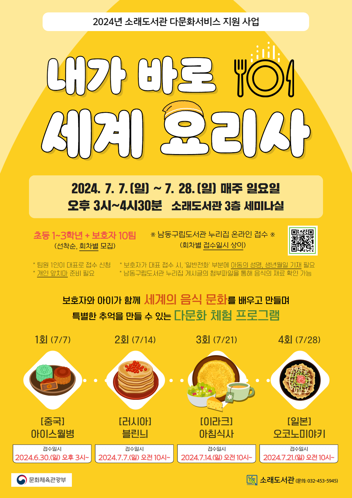 이주민 강사의 진행하에 각국의 문화를 배우고, 보호자와 아이가 함께 요리를 하며 특별한 추억을 만들 수 있는 체험 프로그램